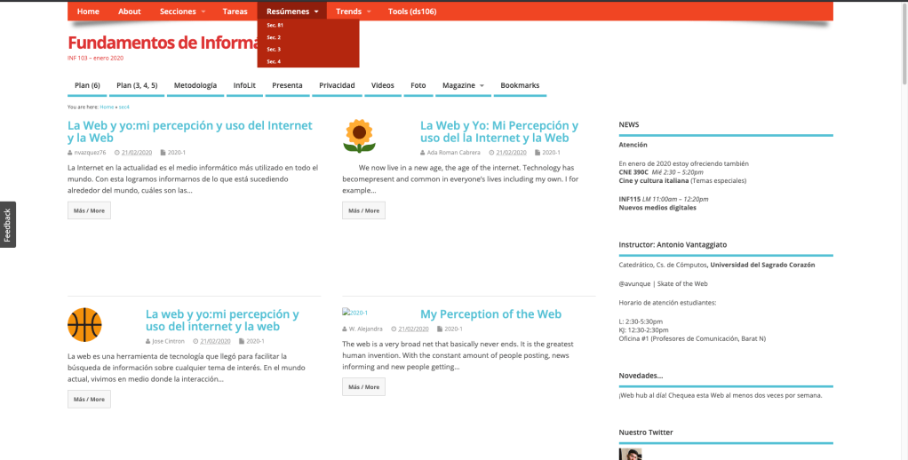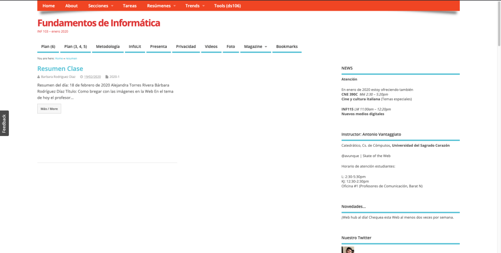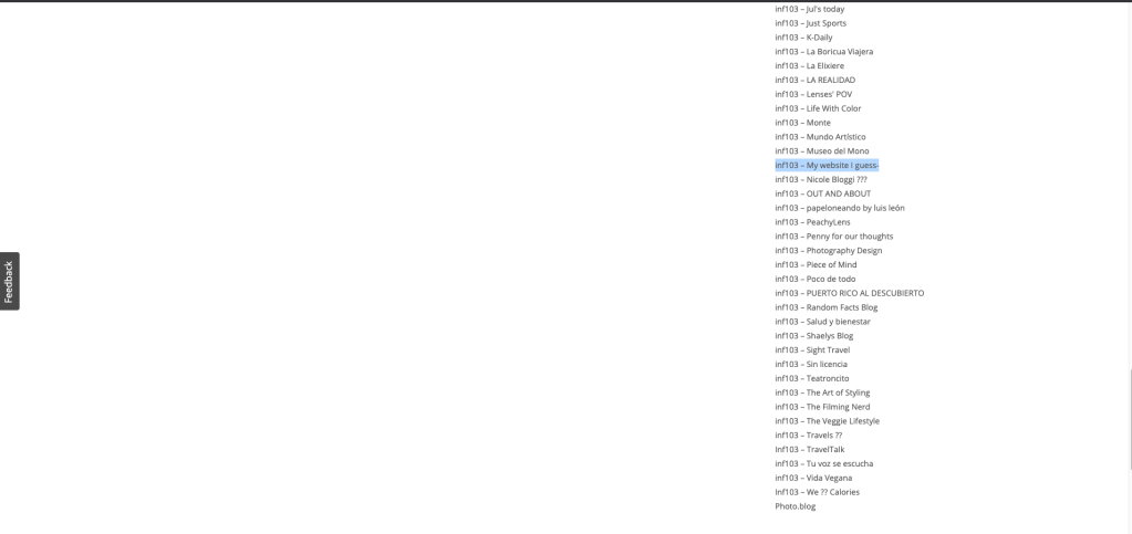 Hey! Today in class we learned on how to properly manage the class’ main website and how to verify if your works were able to be posted and verified by the professor. With this, we learned to use the tabs properly, such as distinguish posts from the different sections of the class, whether it be works or reviews like this one and how to make sure your work gets pasted into the website with the usage of tags and such. Alongside being able to check if the website is linked to the main one by checking the lower right end of the Inf103 site.